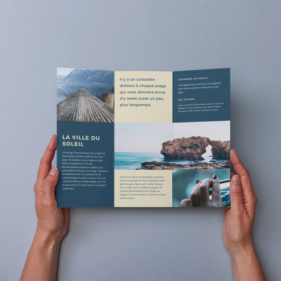 Avec ses 2 ou 3 plis et son impression recto ou recto/verso, il offre plusieurs volets pour organiser vos contenus et capter l’attention de vos clients.